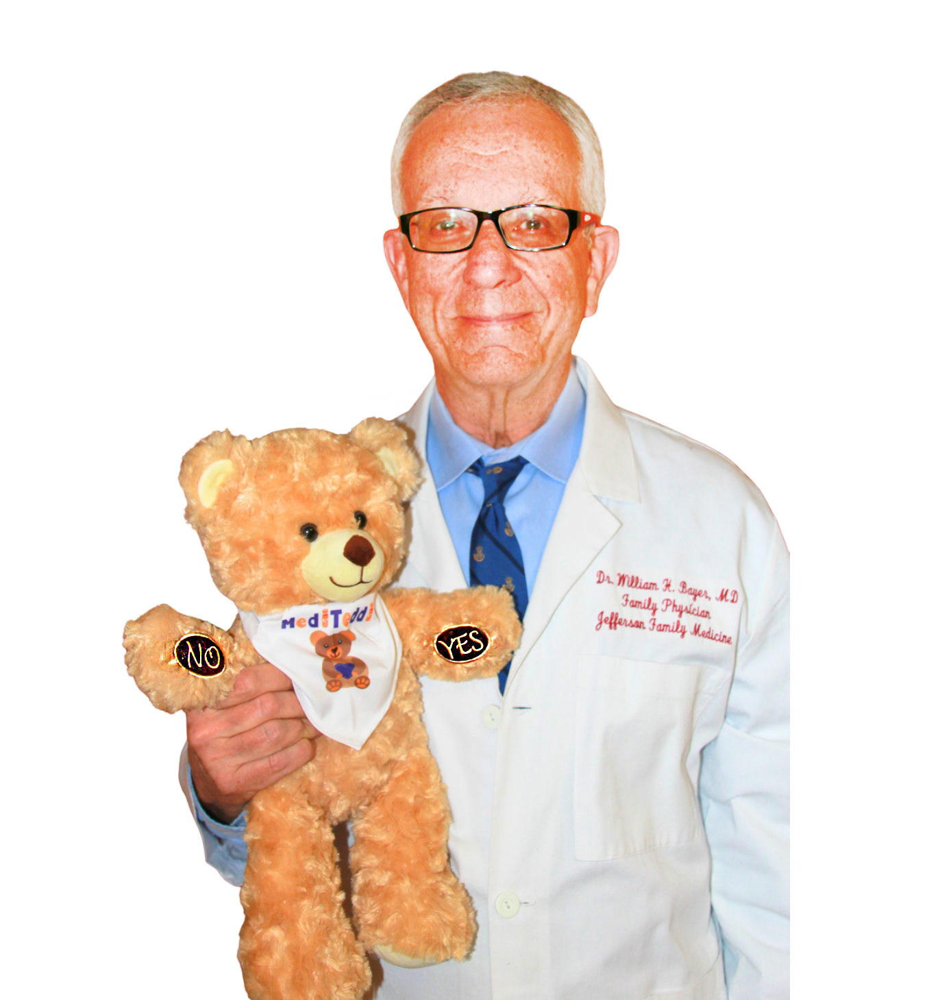 "Dr. William Bayer with his invention MediTeddi"